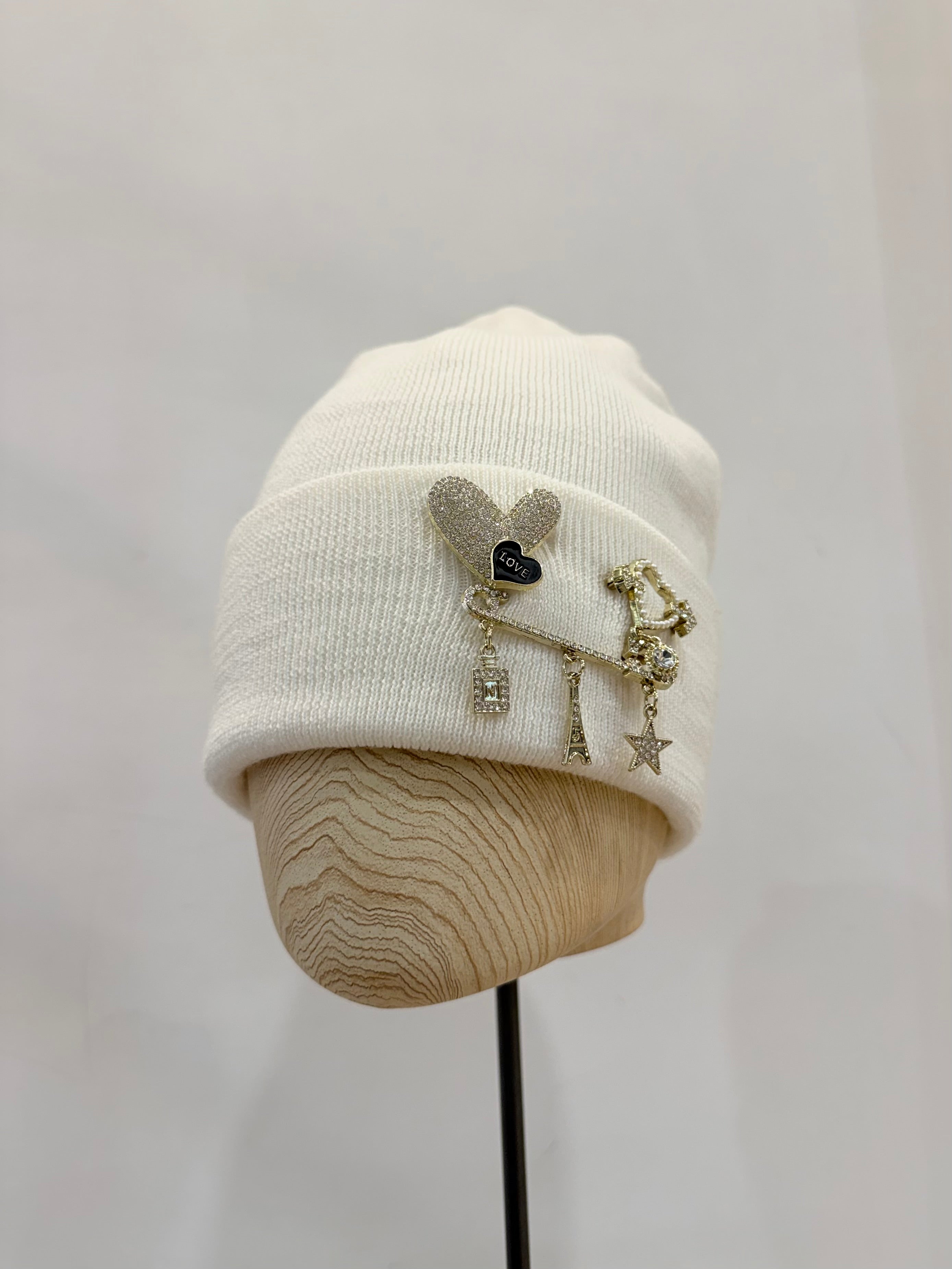 Berretto con spille strass Regina Cachemire