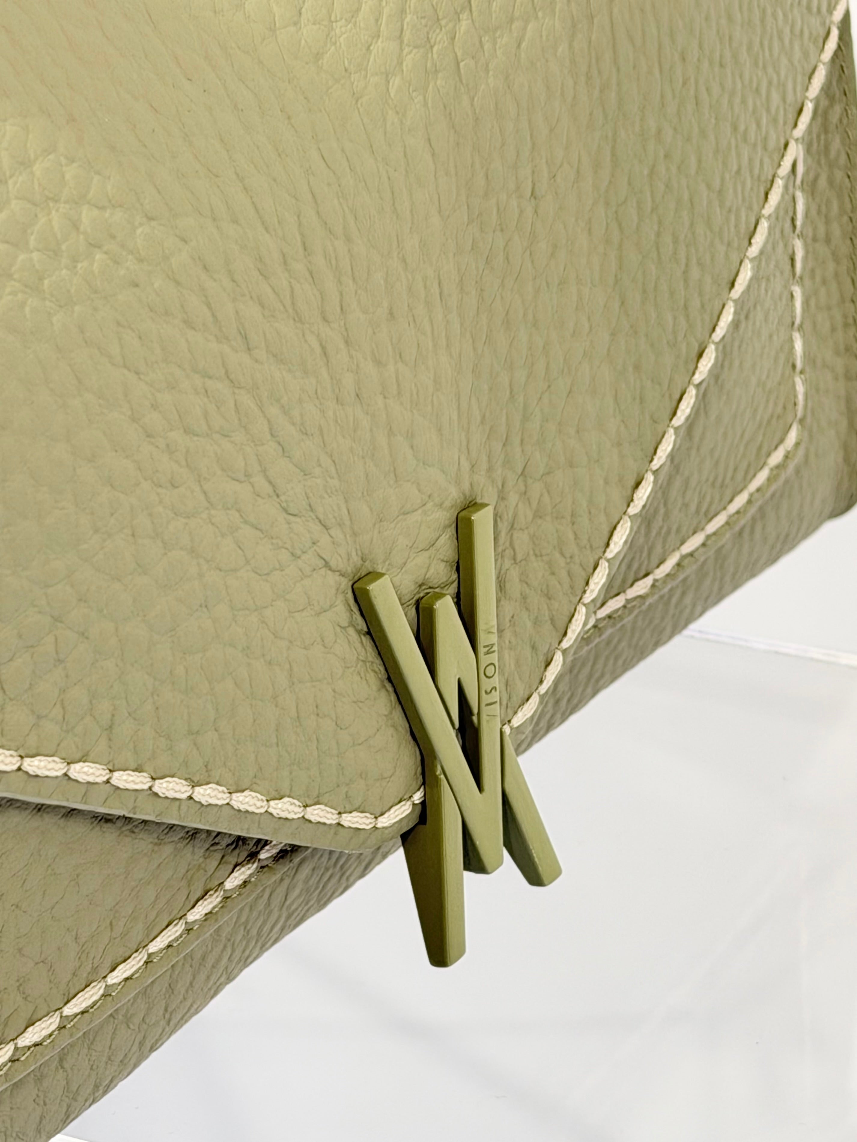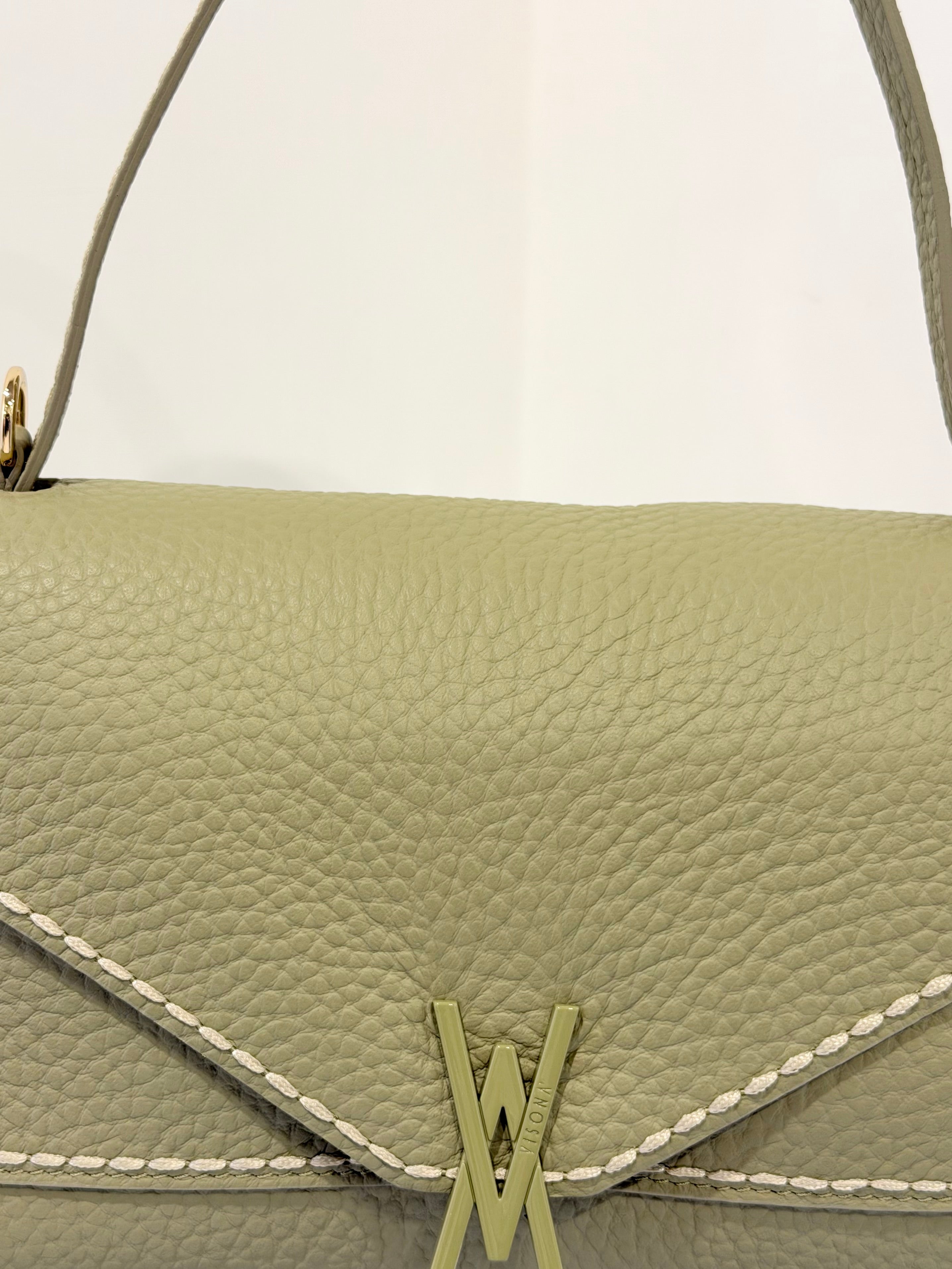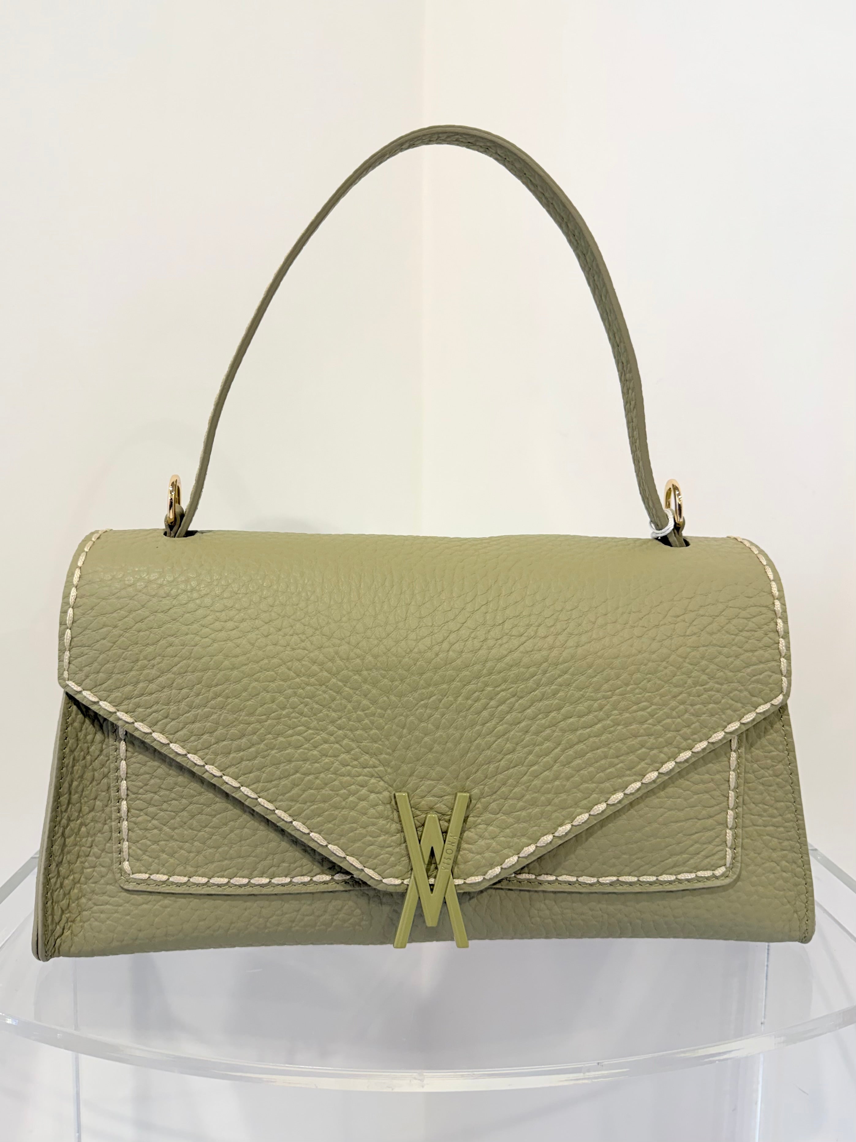 Borsa Valentina di Visonà elegante e contemporanea, questa borsa è realizzata in morbida pelle e si distingue per la sua silhouette compatta e raffinata. Il design con patta frontale e chiusura con bottone dona un tocco pulito e sofisticato, mentre il manico in pelle permette di portarla comodamente a mano.
