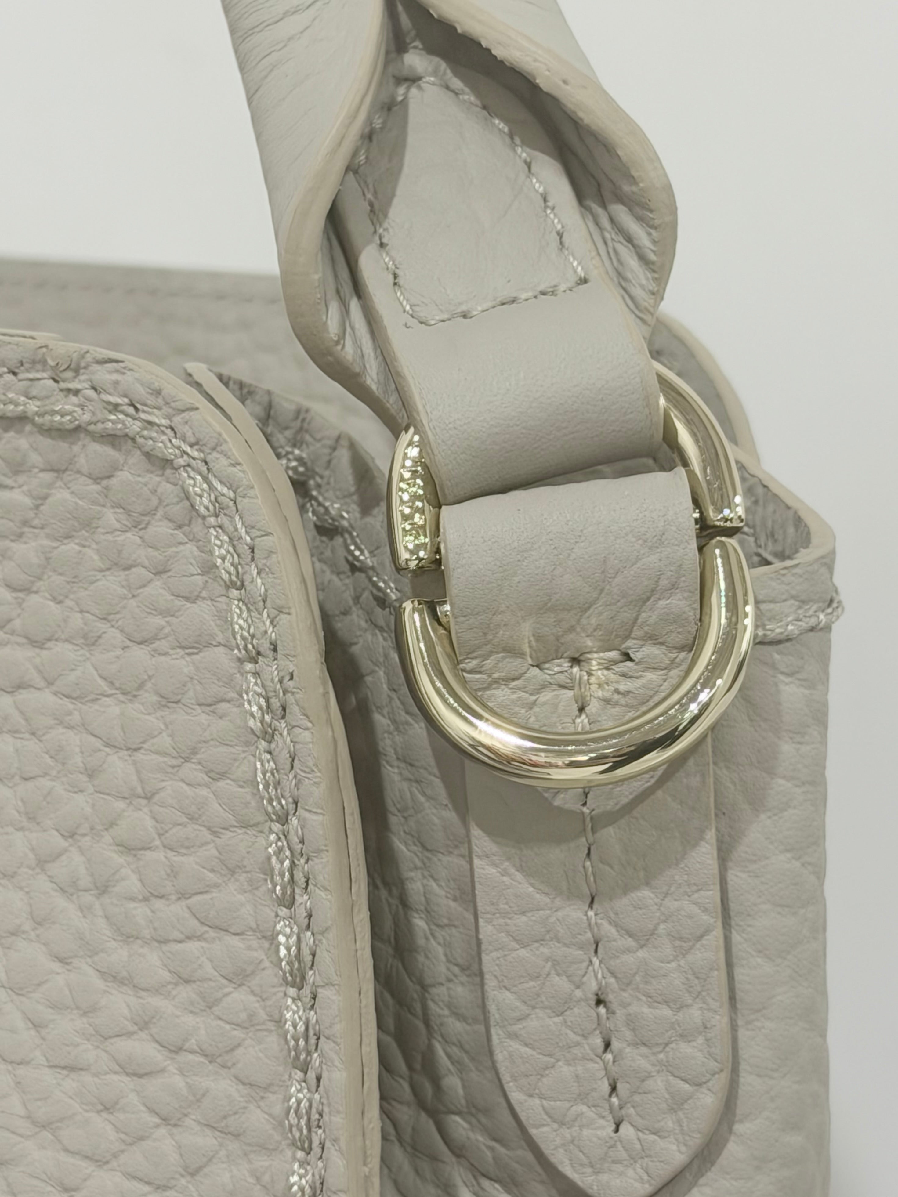 Realizzata in 100% pelle di vitello pieno fiore e interamente Made in Italy, si distingue per le sue cuciture distintive, che donano carattere e raffinatezza al design.