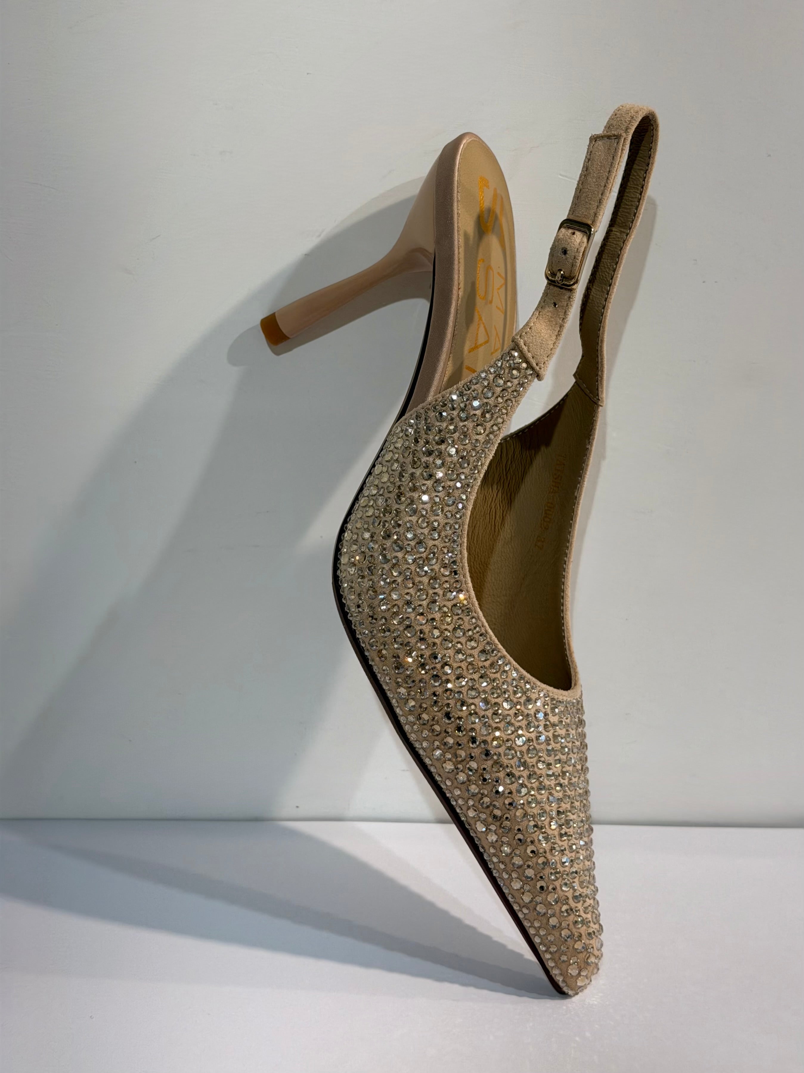 Eleganza luminosa e raffinata definiscono la chanel Taisia, un modello femminile e sofisticato che cattura lo sguardo grazie alla tomaia impreziosita da micro strass di diverse dimensioni. I delicati bagliori che si creano ad ogni movimento donano alla scarpa un’ allure preziosa e contemporanea, perfetta per completare con stile sia look eleganti che outfit più moderni.