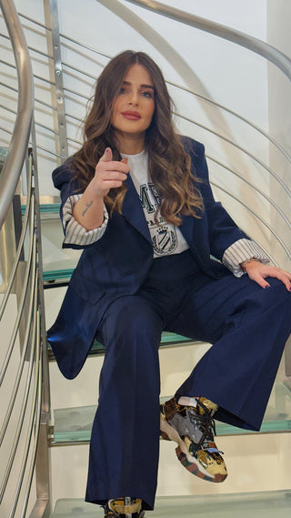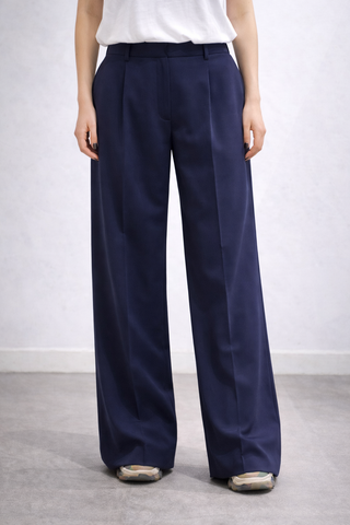 Pantalone palazzo in fresco lana blu Parosh