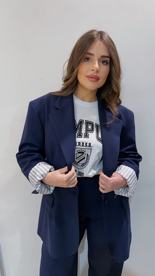 Pantalone palazzo con elastico blu Parosh