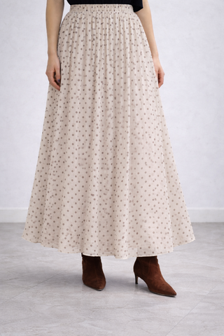 Gonna lunga fantasia pois con elastico in vita Parosh