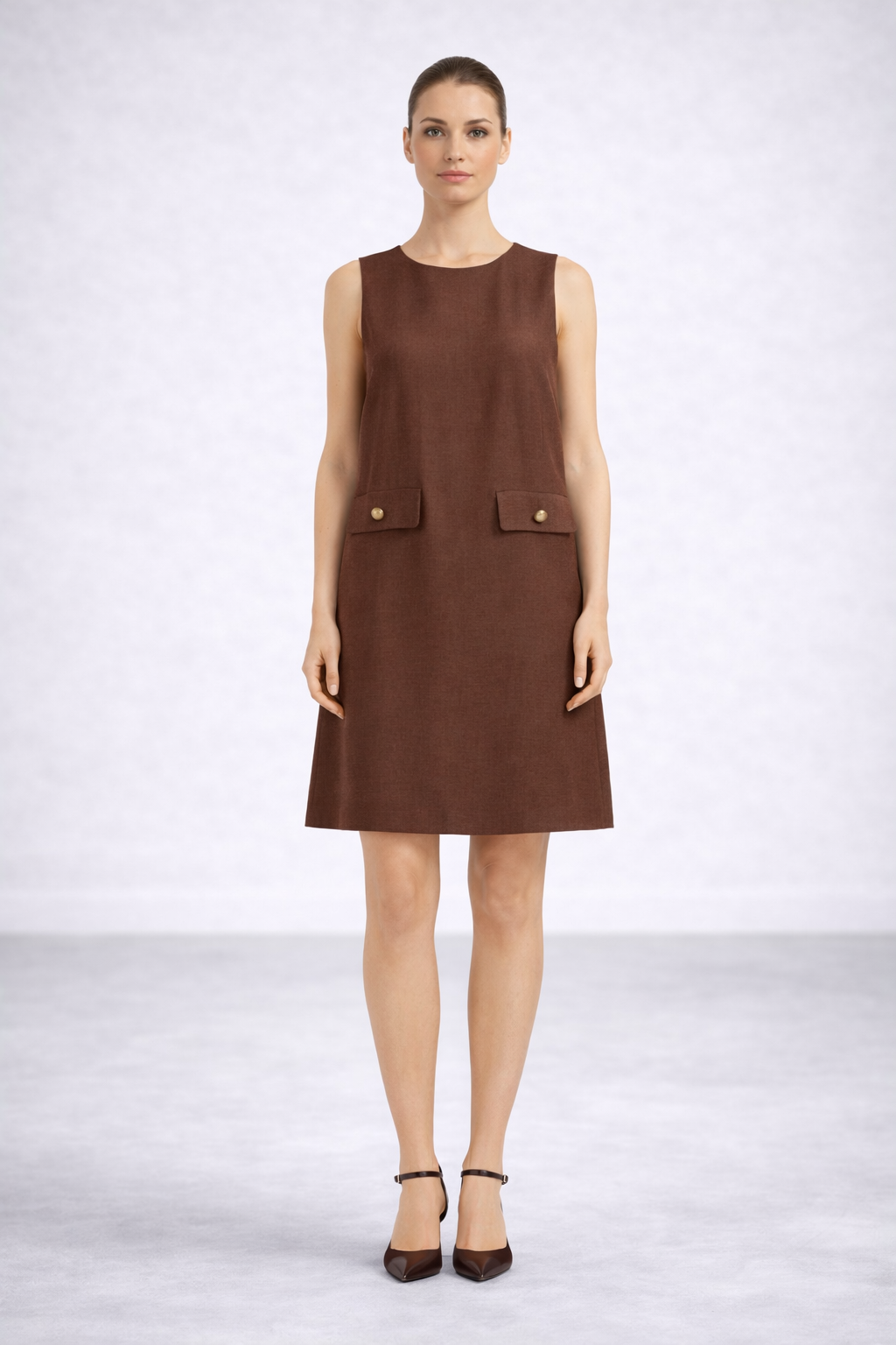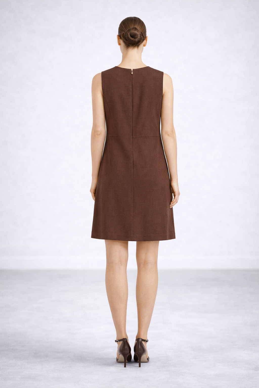 Abitino smanicato dalla linea essenziale e raffinata, pensato per valorizzare la silhouette con naturalezza.