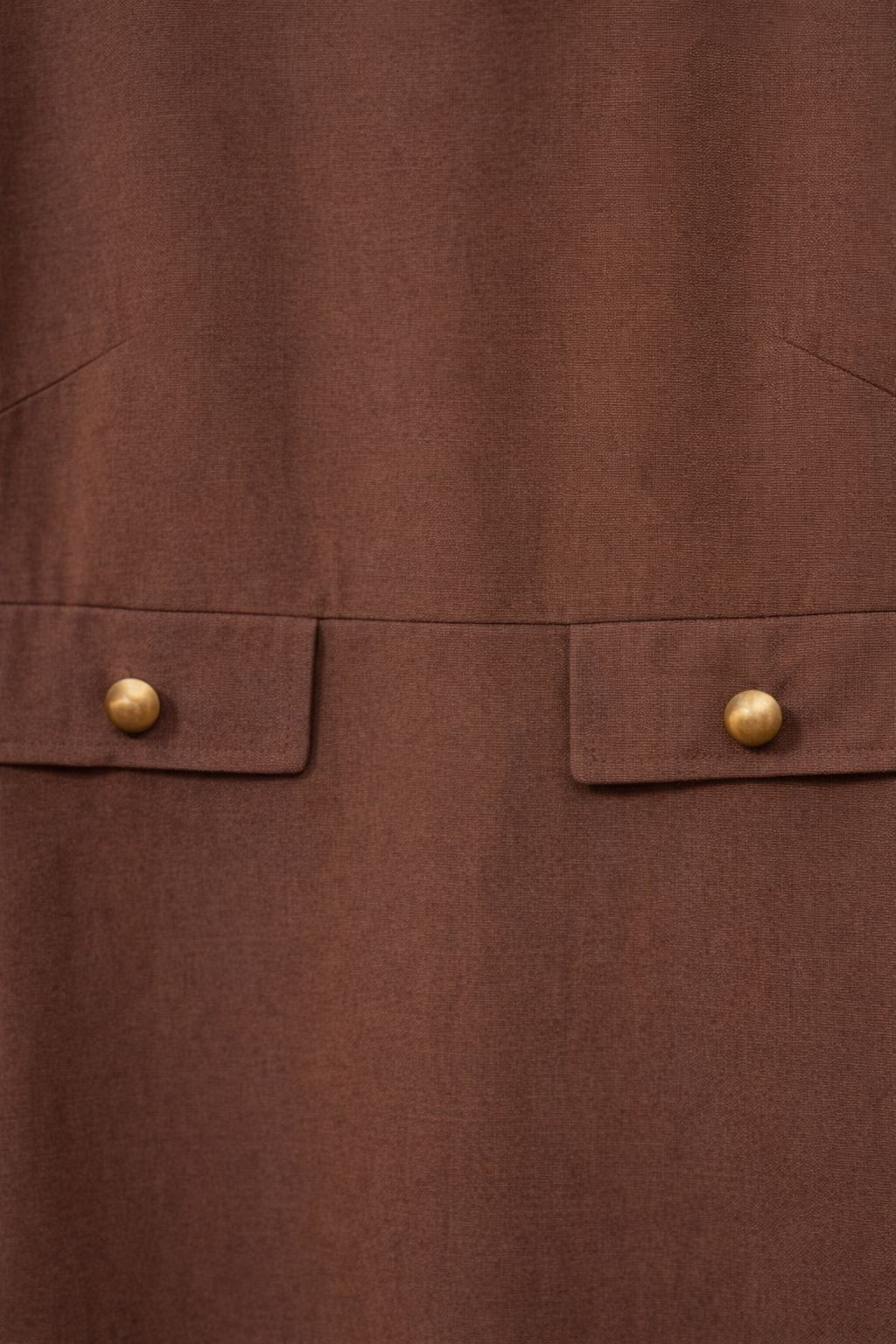 Sul davanti si distinguono due taschine applicate con bottoncini decorativi, dettaglio discreto che arricchisce il design con un tocco ricercato.
